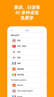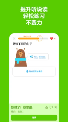 多邻国是一款全球热门的免费外语学习应用,超过5亿用户共同学习。提供40多种语言选择,通过精巧有趣的小单元和游戏化闯关,每天只需几分钟,即可轻松提升听说读写能力,巩固语法,扩充词汇,高效学外语。