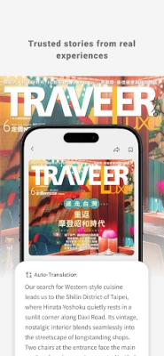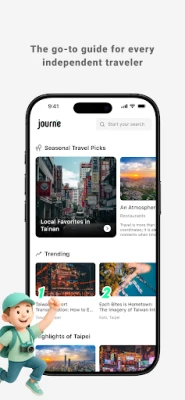 透過 journé 直覺式的地圖功能,您可以輕鬆探索隱藏在台灣各地的精彩故事。無論是尋找懷舊咖啡館、海濱秘境或特色職人旅宿,都能透過關鍵字搜尋或熱門推薦,找到啟發靈感的可靠內容。您可將喜愛的地點一鍵收藏至個人清單,隨時規劃下一趟輕盈旅程。journé 更為獨立旅行者提供全面的實用資訊,涵蓋交通、住宿、貨幣兌換及行前準備,讓您安心暢遊台灣,體驗自由自在的探索樂趣。