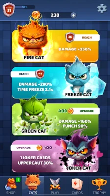 《Cats vs Zombies Solitaire》的核心魅力在于其独创的接龙玩法与深度的战术结合。您将驾驭每只猫咪英雄的独特天赋,施展诸如时间冻结、烈焰火球、绿色能量卡等神奇技能,打出威力惊人的连击组合。用猫咪们灵敏的爪击、精准的出拳和巧妙的钩踢,策略性地清除阻碍。每一次出牌都是一场智慧的较量,每一次连击都可能扭转战局,让您在对抗这些搞怪僵尸的进程中,体验到运筹帷幄的成就感。